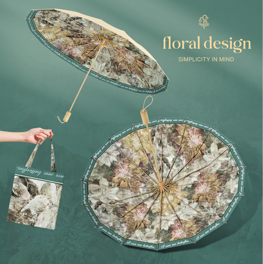 花影の3段折りたたみ傘(晴雨兼用傘)16本骨