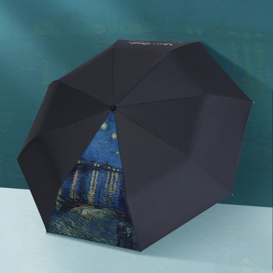 ”ゴッホのローヌ川の星夜” 3段折りたたみ傘(晴雨兼用傘)8本骨 二枚生地