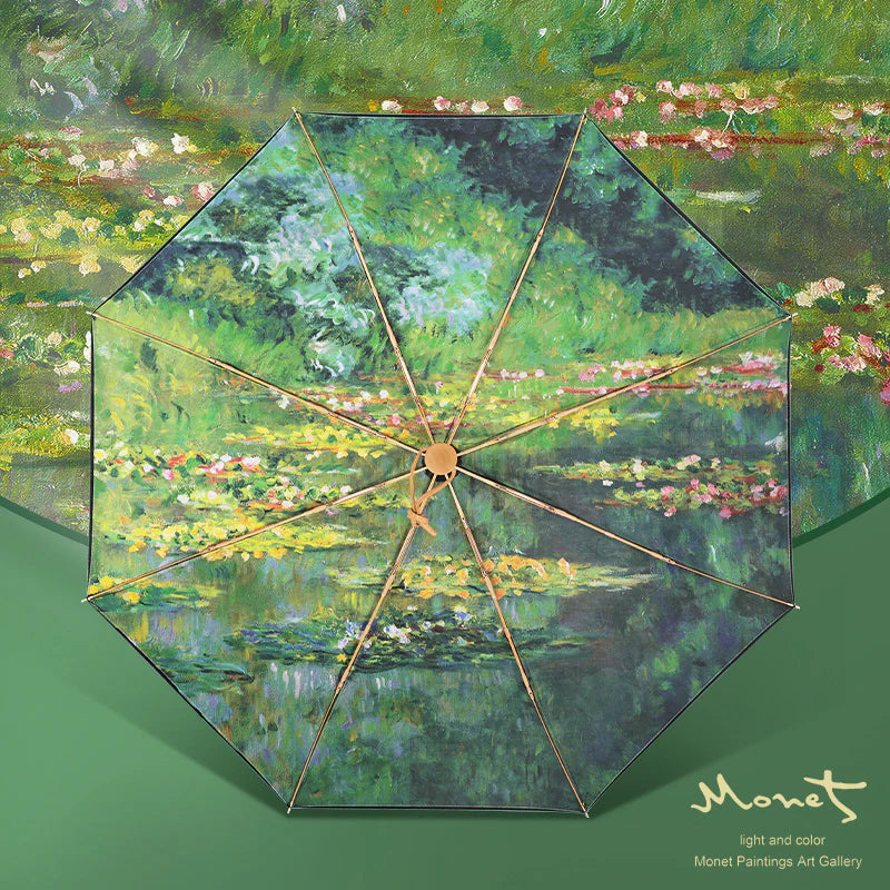 ”モネの睡蓮”の3段折りたたみ傘(晴雨兼用傘)16本骨 二枚生地(両面柄あり)