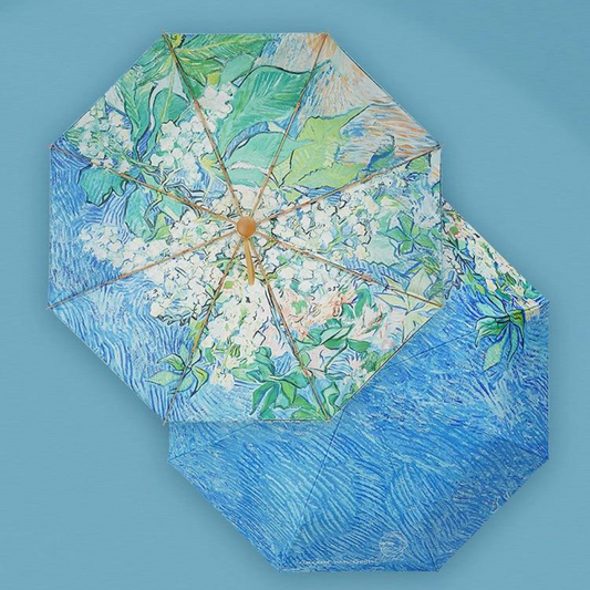 ”ゴッホの開花する栗の枝” 3段折りたたみ傘(晴雨兼用傘)8本骨 二枚生地