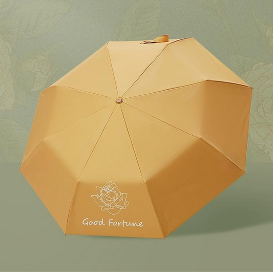 黄色い薔薇の3段折りたたみ傘(晴雨兼用傘)8本骨 二枚生地