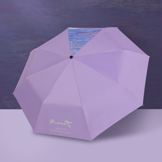”モネの紫睡蓮” 3段折りたたみ傘(晴雨兼用傘)8本骨 二枚生地