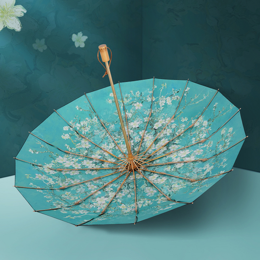 ”ゴッホの花咲くアプリコットの木の枝” 3段折りたたみ傘(晴雨兼用傘)16本骨