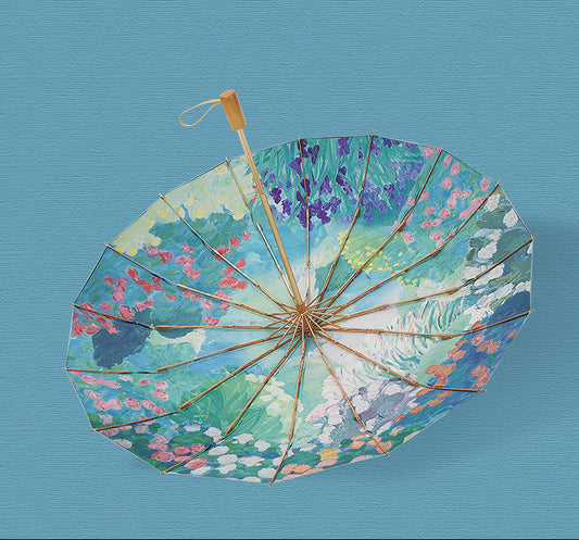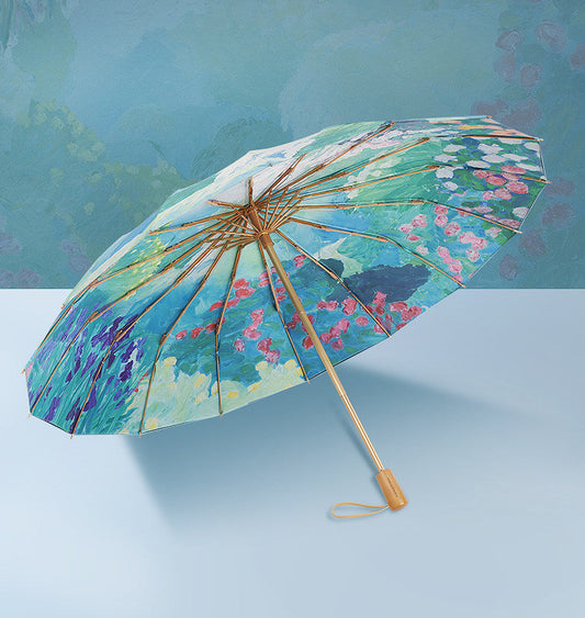 ”ゴッホの薔薇園” 3段折りたたみ傘(晴雨兼用傘)8本骨 二枚生地