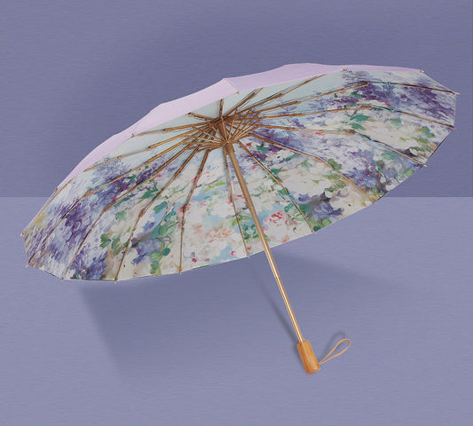 ”モネの紫睡蓮” 3段折りたたみ傘(晴雨兼用傘)8本骨 二枚生地
