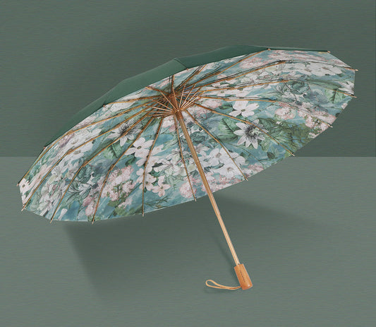 サンザシ柄の3段折りたたみ傘(晴雨兼用傘)16本骨 二枚生地