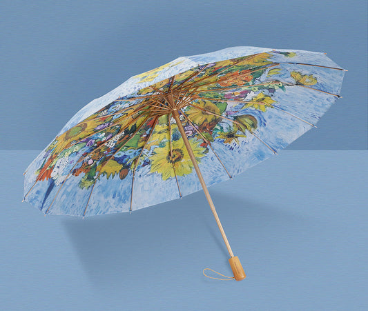 ”ゴッホの向日葵” 3段折りたたみ傘(晴雨兼用傘)16本骨 一枚生地/二枚生地
