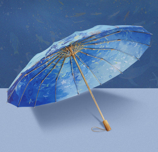 深海の煌めき3段折りたたみ晴雨兼用傘 16本骨