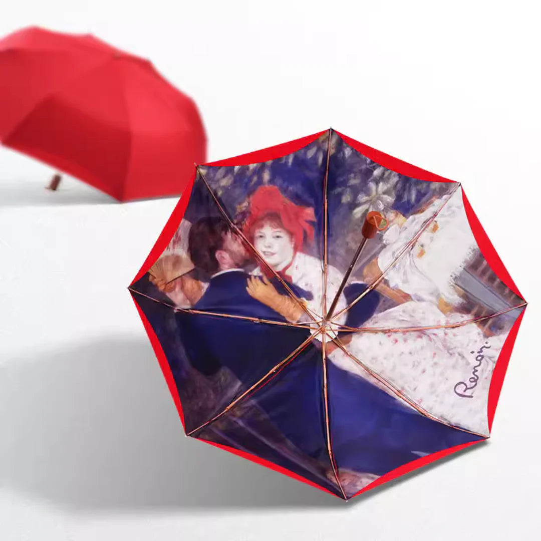 ルノワールの「田舎のダンス」の3段折りたたみ傘(晴雨兼用傘)8本骨