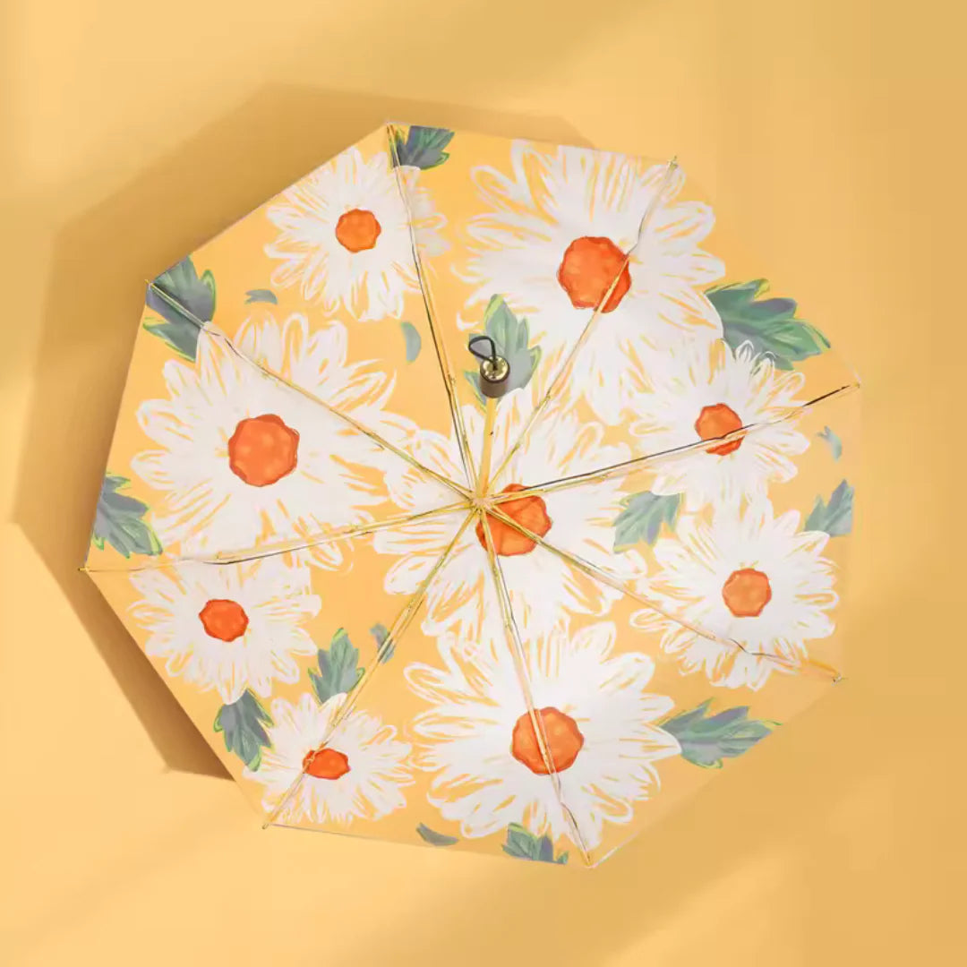オレンジ×イエローの大輪の花柄傘(3段折りたたみ・晴雨兼用)