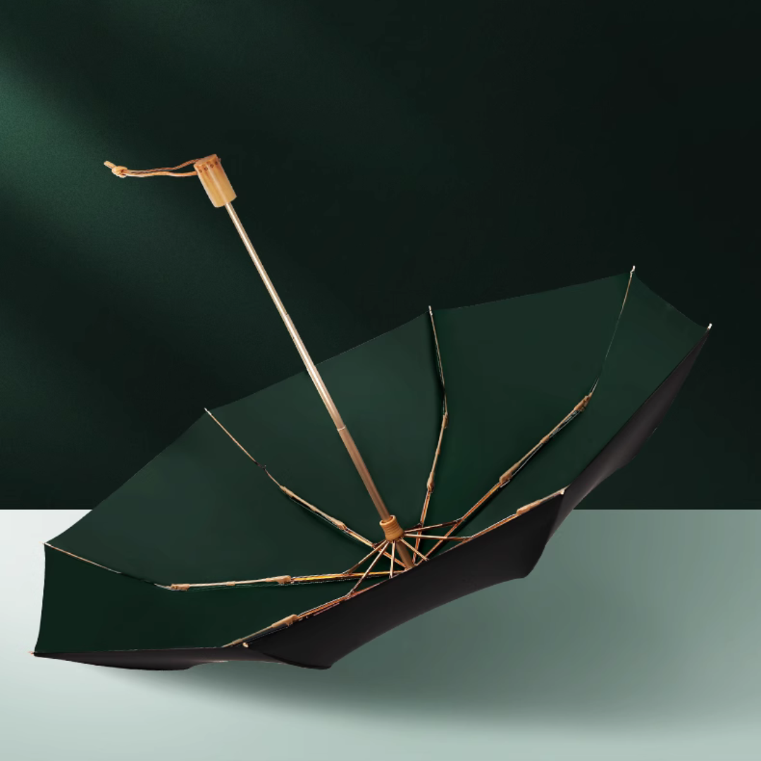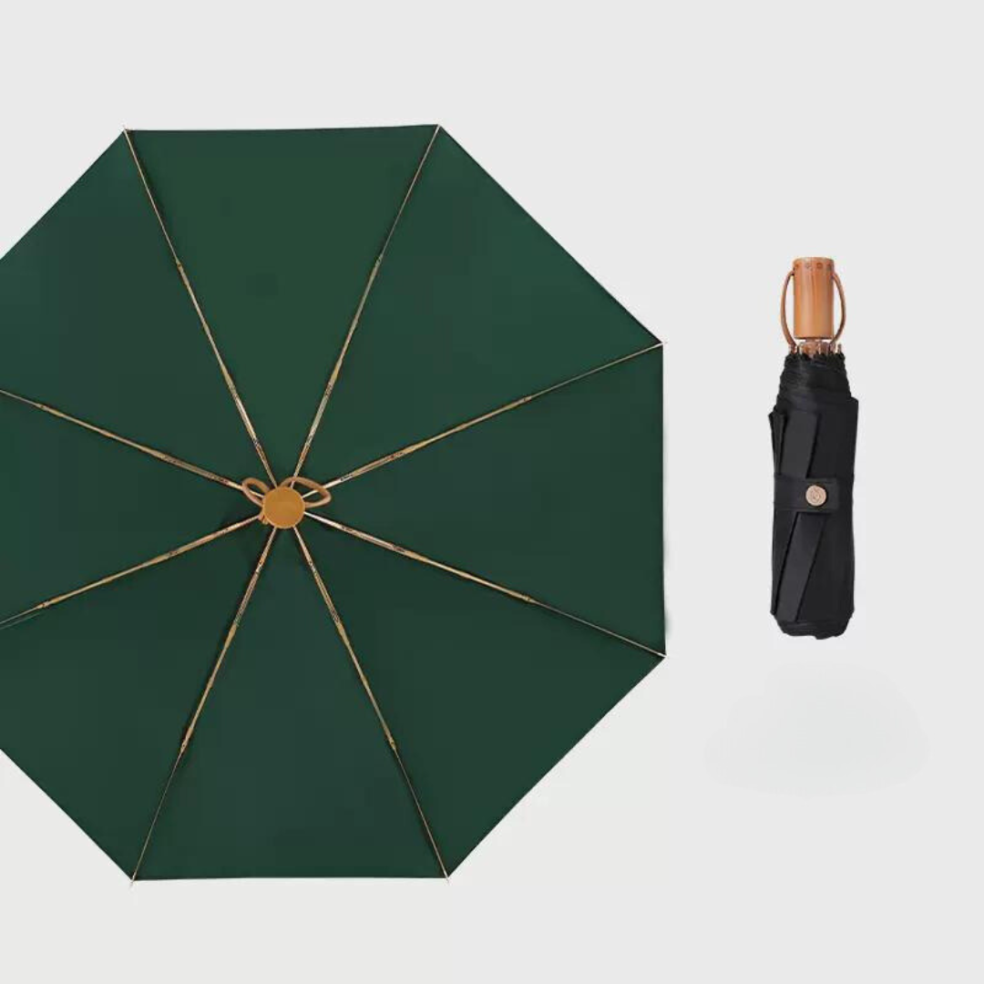 スタンダート・グリーンの3段折りたたみ傘(晴雨兼用傘)8本骨 二枚生地